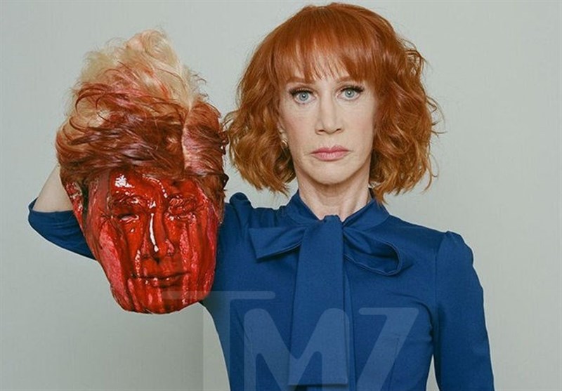 به گزارش حدیدنیوز به نقل از نشریه «هیل» چاپ کنگره آمریکا، «تایلر شیدلز» عکاس مشهور آمریکایی عکسی از «کتی گریفین» کمدین و تهیه کننده آمریکایی منتشر کرده در حالی که گریفین ماکتی از سر بریده و خونین «دونالد ترامپ» رئیس جمهور آمریکا را به دست گرفته است.